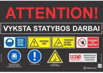 Saugos tentas statybvietėms – privalomas statybvietės ženklas pagal STR. Statybų tentas su saugos ženklais – geriausias sprendimas norint apsaugoti statybvietę. Informacinis tentas statybvietėms – greičiausias būdas įvykdyti STR reikalavimus. Tvoros tentas su metaliniais žiedais – patikimas ir patvarus pasirinkimas. Įspėjamasis tentas statybvietėms pagal įsakymą Nr. 95. Statybvietės tentas – idealus sprendimas statybų tvorai. STR tentas su saugos ženklu – privalomas kiekvienoje statybvietėje. Statybų tvoros tentas atsparus UV spinduliams ir drėgmei. Statybos objekto tentas su spauda – greita gamyba, pristatymas į statybvietę. Saugos ženklas statybvietėje – apsauga darbuotojams ir praeivims. Privalomas statybvietės ženklas pagal STR – visi variantai vienoje vietoje.